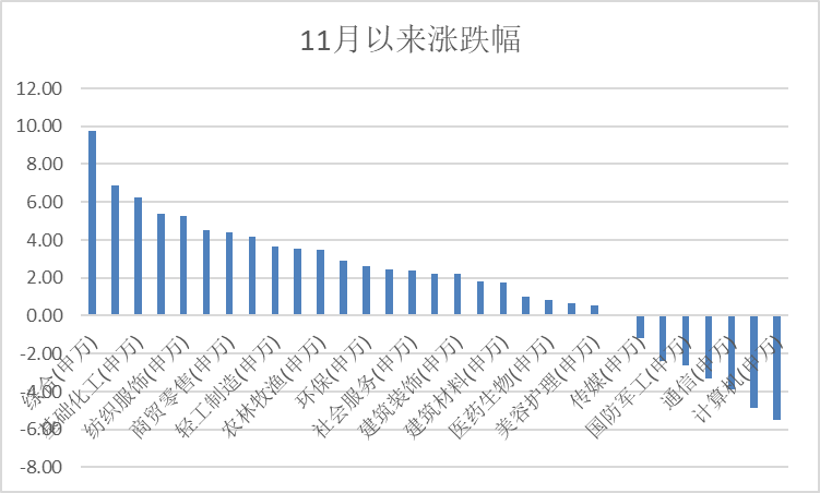 从今年的市场情况来看,前期科技成长板块快速超涨,国庆节前价值风格相对于成长风格的偏离度显著低于历史中枢,与2024年10月初、11月初的极端情况类似。节后市场波动加剧,投资者风险偏好反复,相对稳健的价值风格已显现回暖迹象,这进一步凸显了红利资产在年末的投资价值。自从11月以来,石油化工,银行,服装等传统红利板块便开始占据上风,而科技板块则出现了较大幅度的调整。