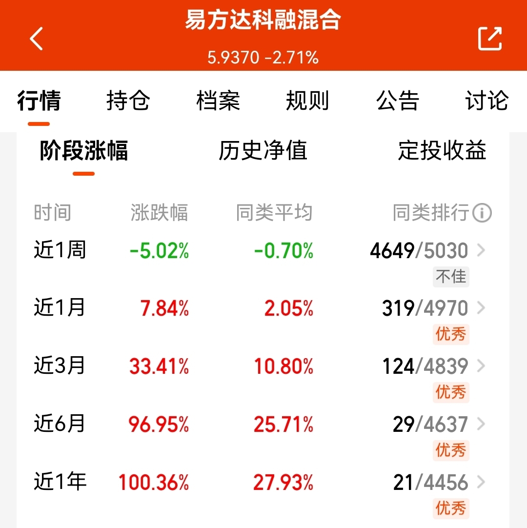 这支$易方达科融混合$ 目前持仓科技、新能源、军工等热门板块,今天也算是赶上修复了,而且持仓分散,即便前期调整多,这支也能及时对冲风险;