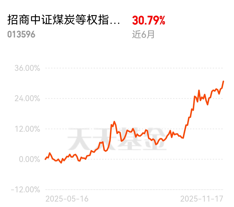 持仓煤炭板块,近期作为防守资产,也是持续逆势反弹,近1个月涨9.54%了,近半年收益30.79%,依然是跑赢红利了,作为科技等板块的风险对冲,我觉得也还是不错啦;