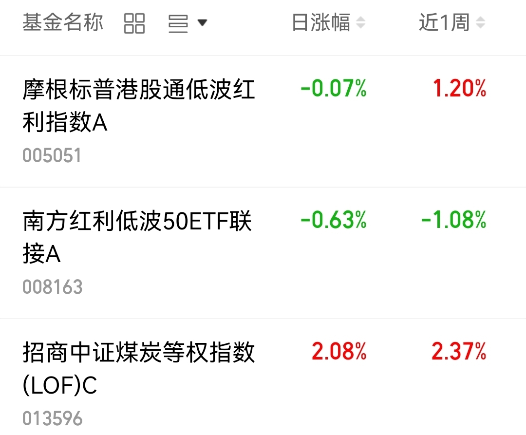 这支$摩根标普港股通低波红利指数A$ 昨天收益-0.07%