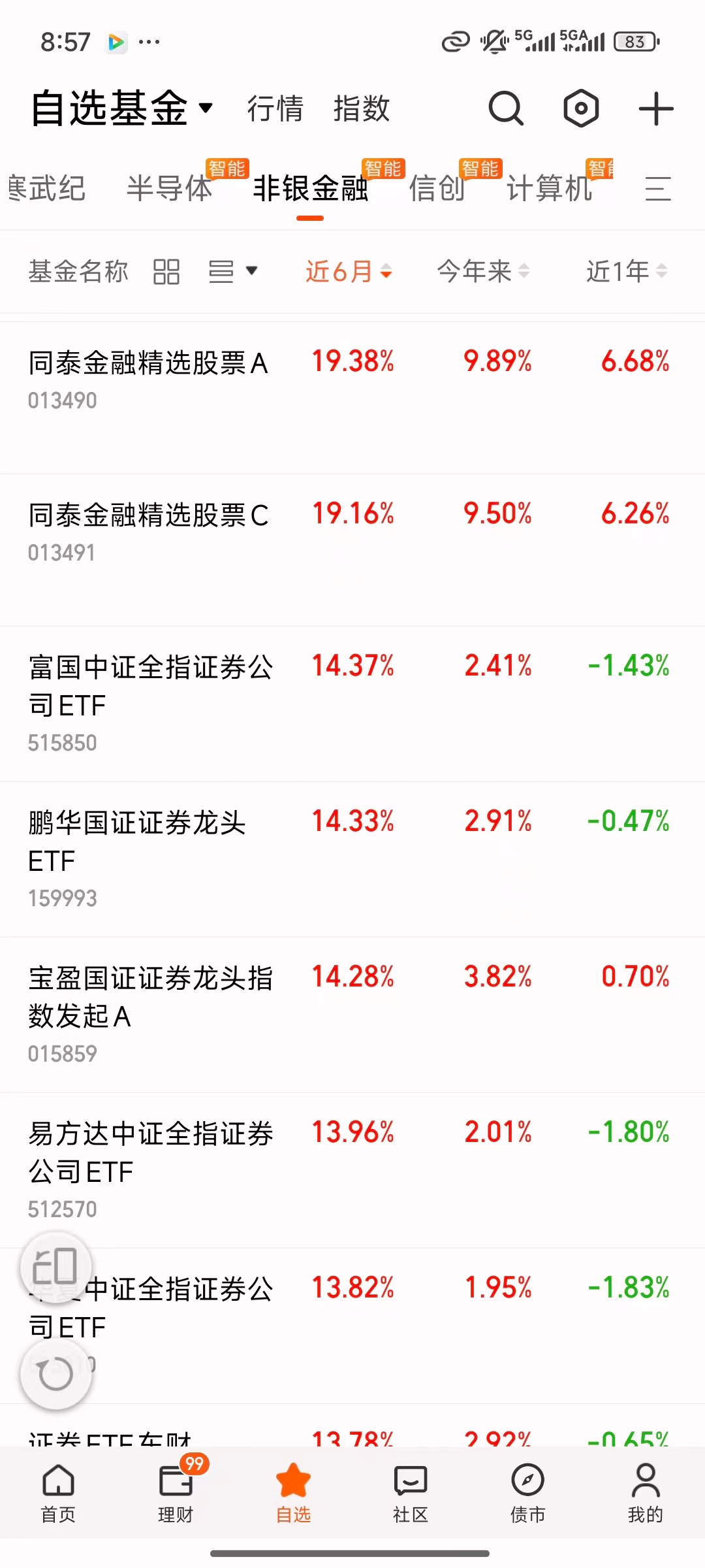 最近行情不错,金融板块有启动迹象。推荐几个小而美的主题基金,弹性大,去年还拿过第一。干券商,选金融精选。