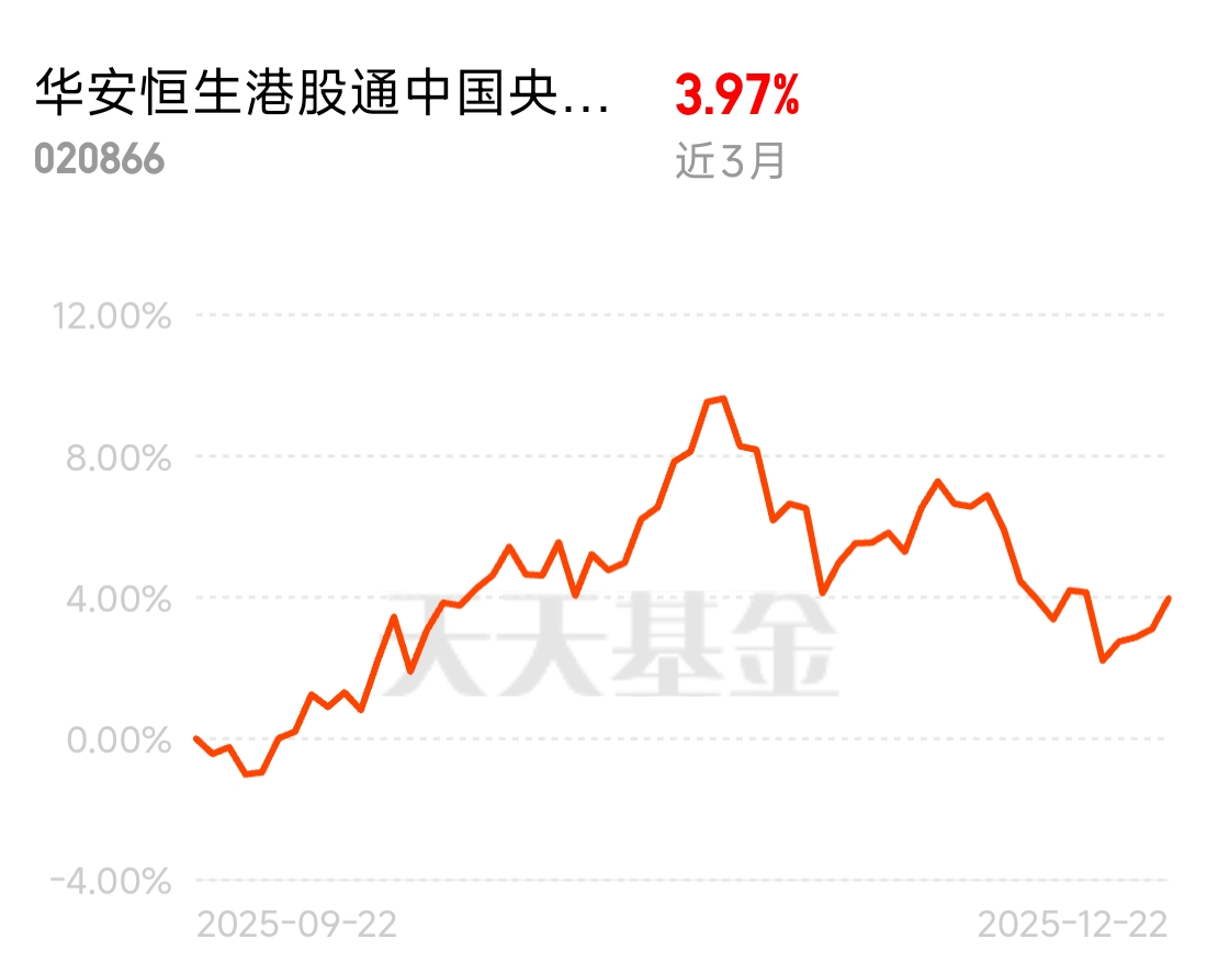 入选超省指数太香了!$华安恒生港股通中国央企红利ETF发起式联接A$ 在港股红利里股息最高、估值最低,0 折申购,近 3 月涨 3.97%,收益实打实的亮眼