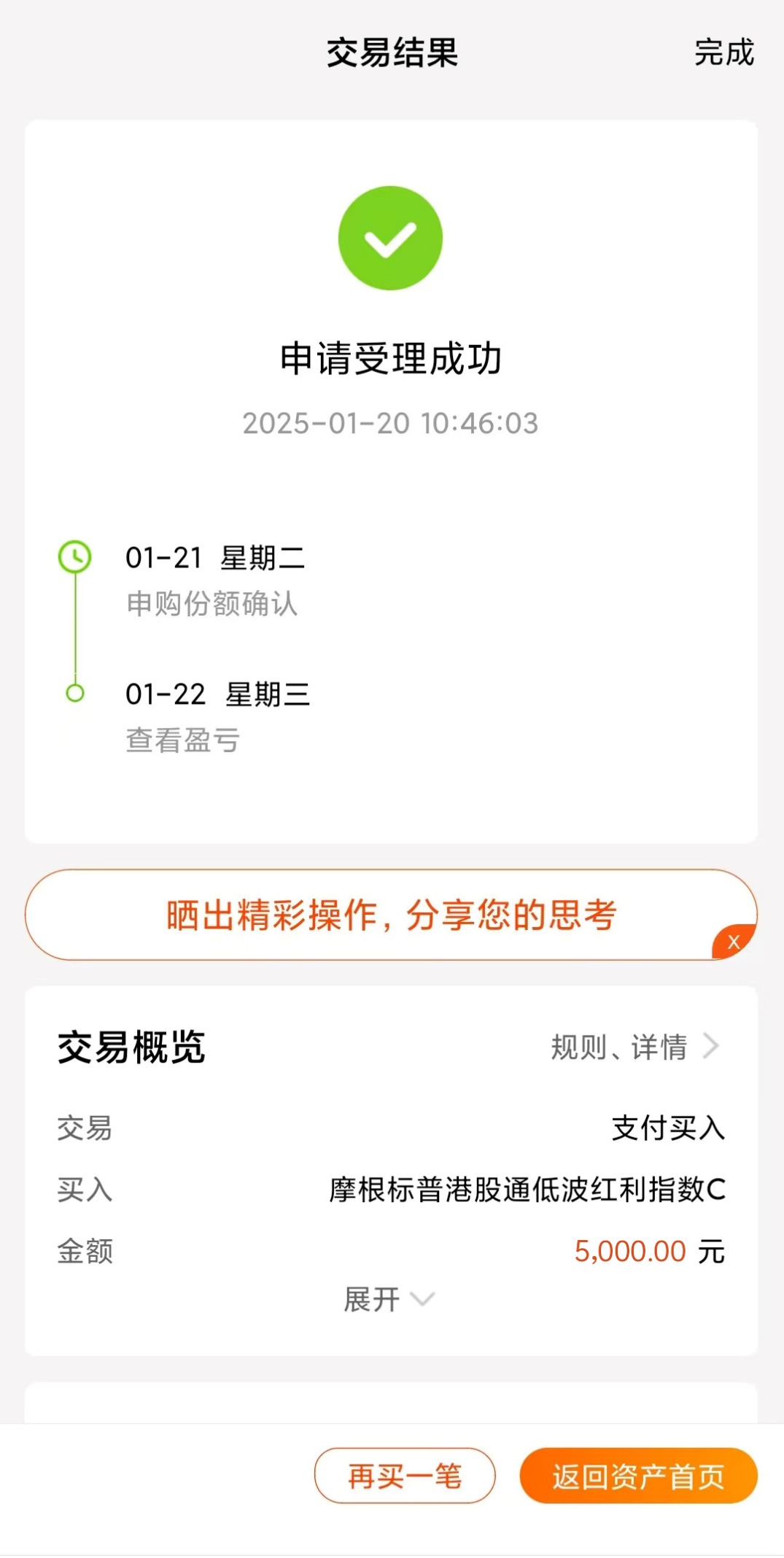所以趁着春节前还没有休市的这一段时间,我就多布局了一点$摩根标普港股通低波红利指数C$ ,这基最近一个礼拜的表现还是蛮不错的,涨了1.5%左右,比起之前关注的华泰柏瑞中证红利或者是南方低波红利都高了不少。准备继续拿住这基,开开心心的过大年咯#1月你有哪些操作计划?#