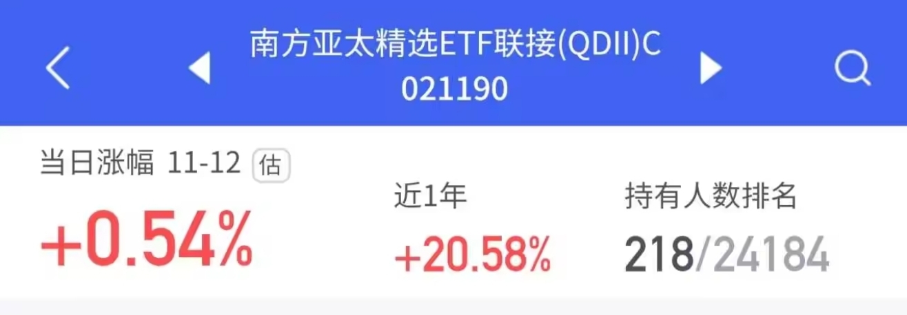 真给力啊,最近海外基金还得看亚太,$南方亚太精选ETF联接(QDII)C$今天又