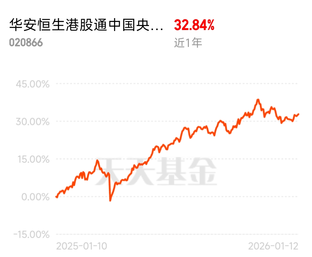 $华安恒生港股通中国央企红利ETF发起式联接A$ 近一年涨32.84%,震荡市的压舱石,聚焦金融能源核心,低估值超靠谱