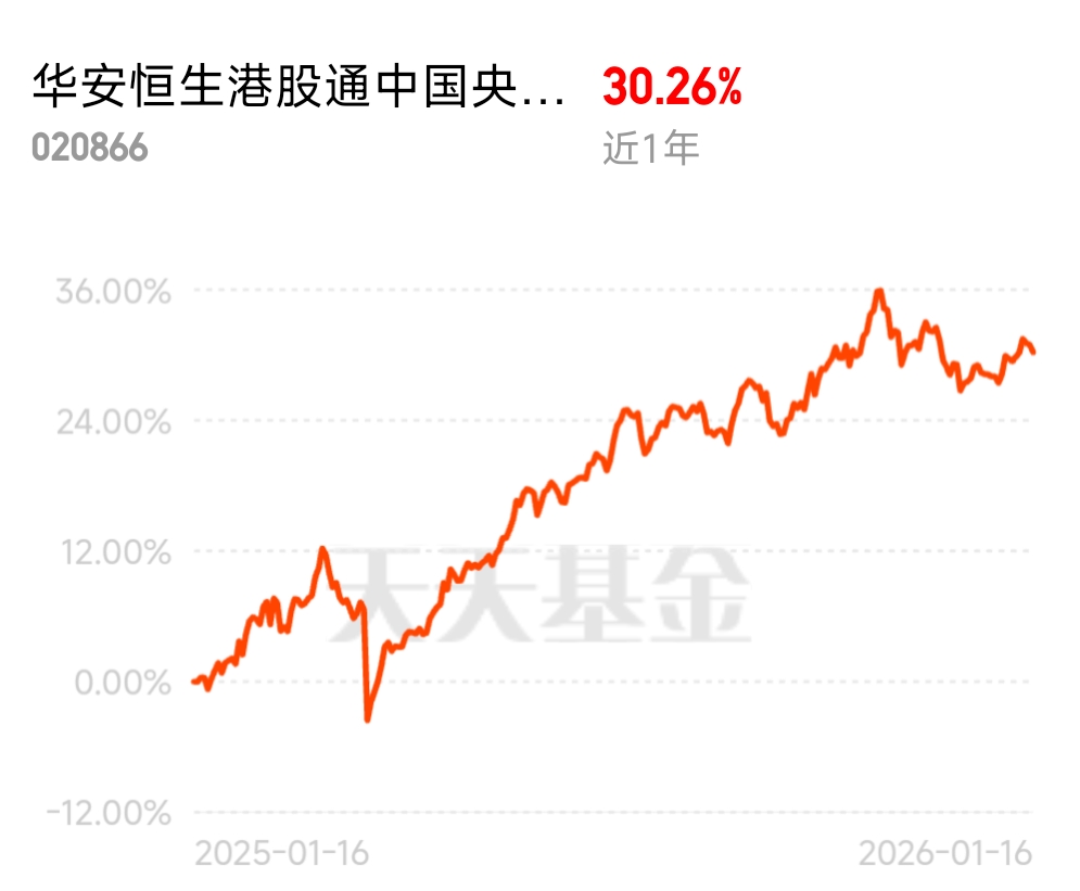 震荡市避险神器,$华安恒生港股通中国央企红利ETF发起式联接A$ 近 1 年涨 30.26%,高股息 + 稳盈利,给资产加层安全垫