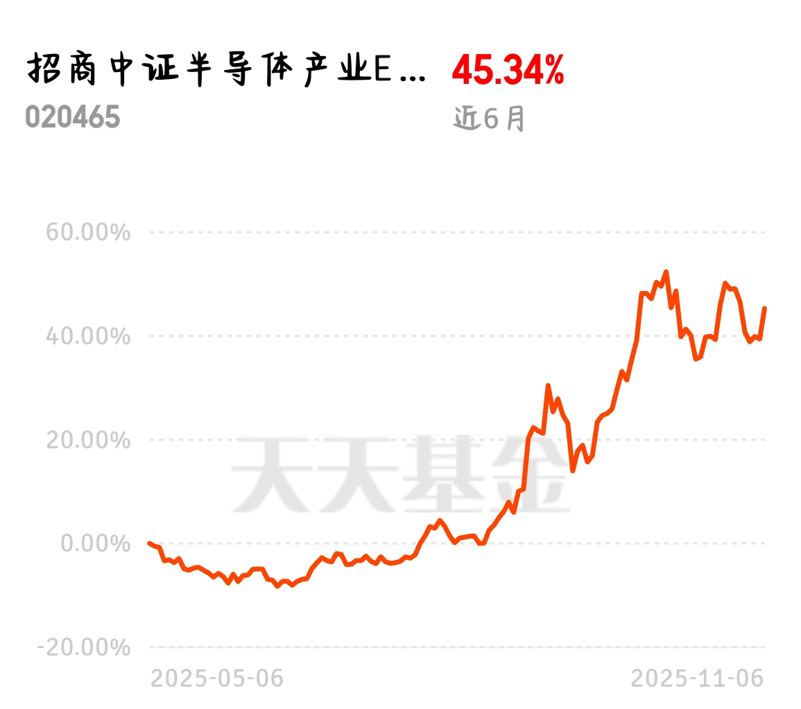 全球存储巨头纷纷提价,DRAM和NAND闪存价格持续走高,行业盈利预期改善。招商中证半导体产业ETF联接C近6个月涨幅达45.34%,昨日上涨4%多,资金转向存储布局,接下来大概率接着涨。