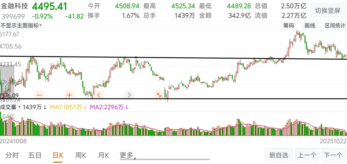 周线图金融科技突破箱体后回踩。。日线图如果能放量就好了。。感觉黄金有回踩20周线