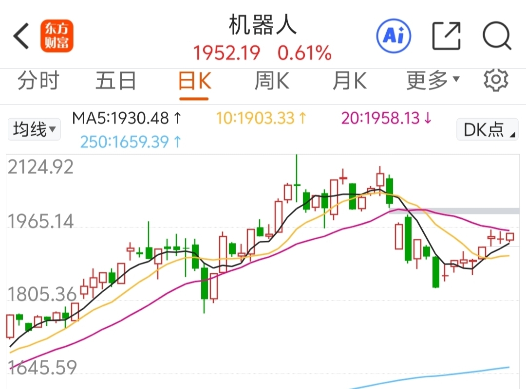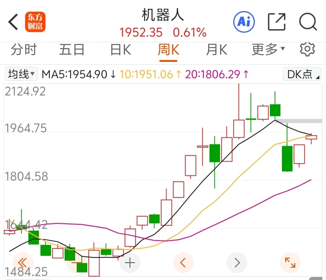 机器人的走势不好。。日线被20日线压制,周线被五周线压制。。不像有些板块被20周