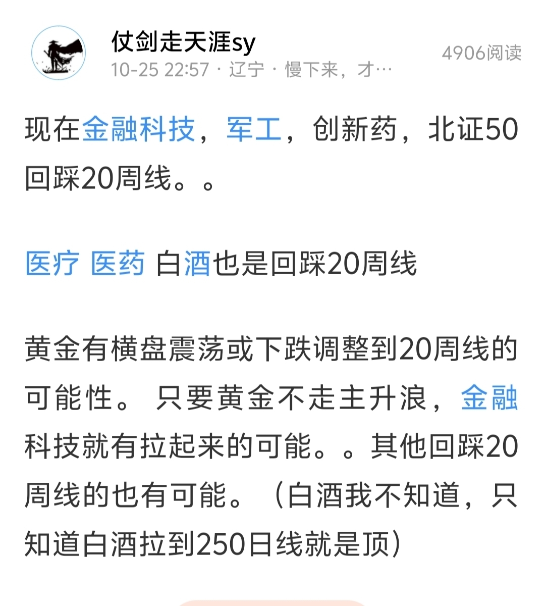 之前说的回踩20周线的板块,金融科技 军工 北证50 都起来了。。