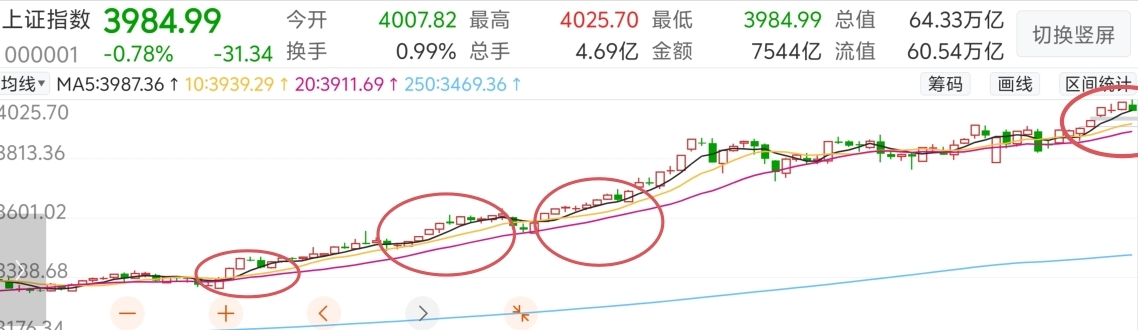 莫慌,连续上涨几日,远离五日线,正常回踩五日线。。 沪深日线回踩五日线。。 涨多了,偏离五日线,向五日线靠拢。。 趋势还在。。