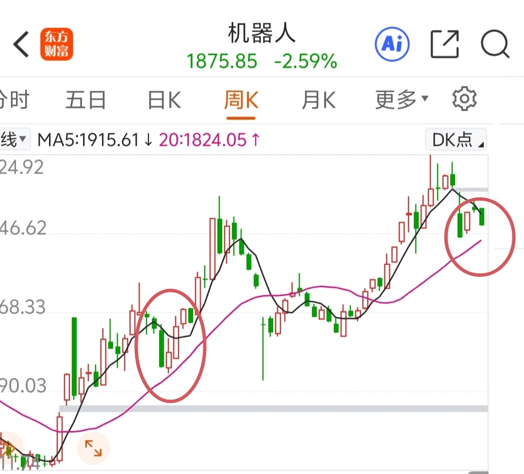 机器人等回踩20周线再进。。要么本周继续大跌到20周线,要么下周20周线上来了跌