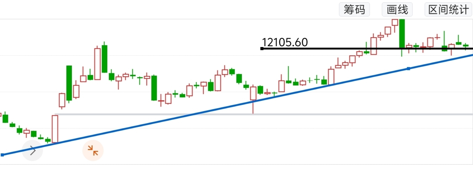 现在是横盘震荡向着蓝线靠拢过程中。。大概需要两三周能碰到蓝线。。
