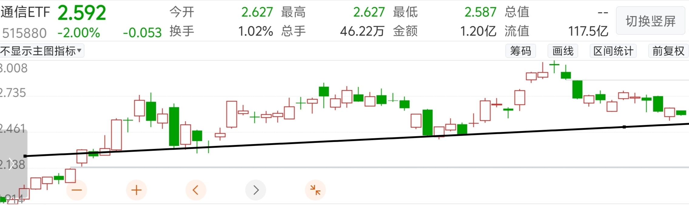 恒生科技指数可以低吸,正好跌到周线支撑线。。通信还没跌到支撑线。