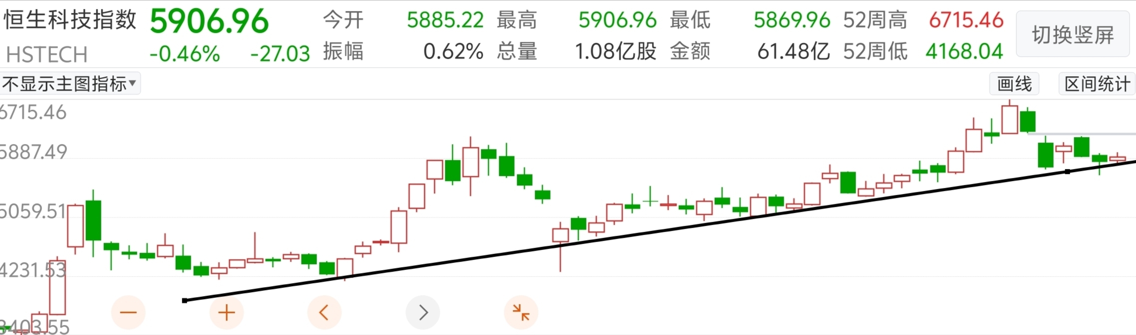 恒生科技指数可以低吸,正好跌到周线支撑线。。