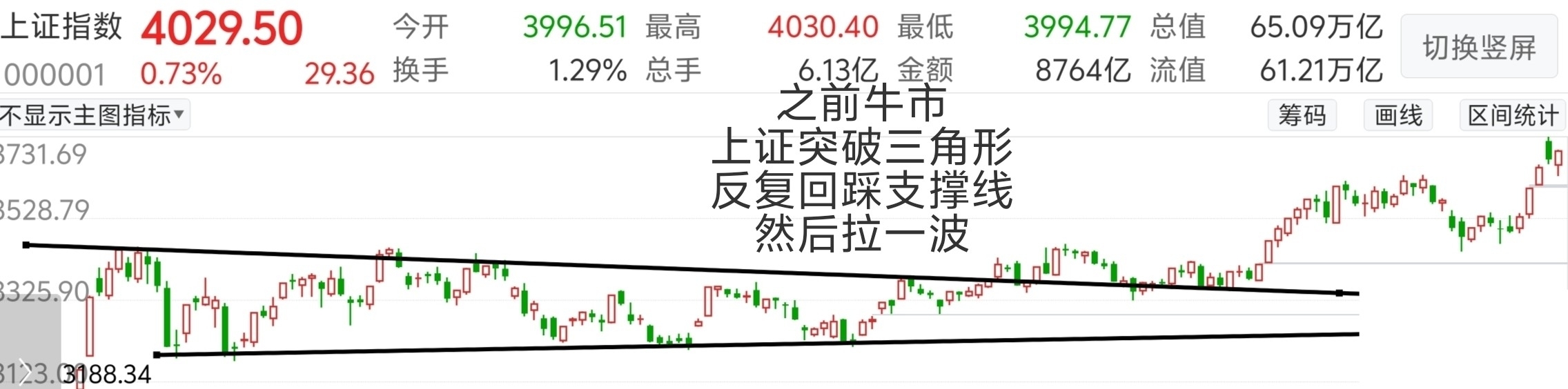 突破三角形后的反复震荡。。