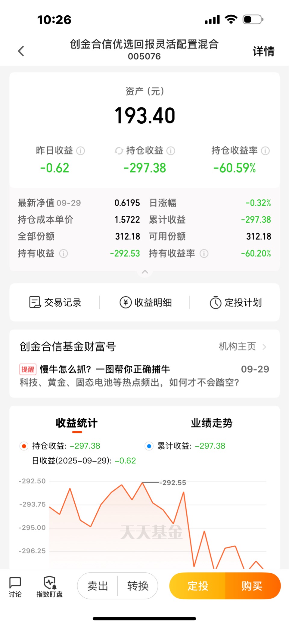 幸亏买的少、亏了60%