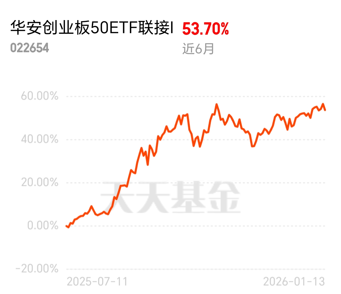 $华安创业板50ETF联接I$ 近 6 月涨 53.70%,覆盖创新药 + 金融科技,7 天免赎回费,长期持有成本超划算
