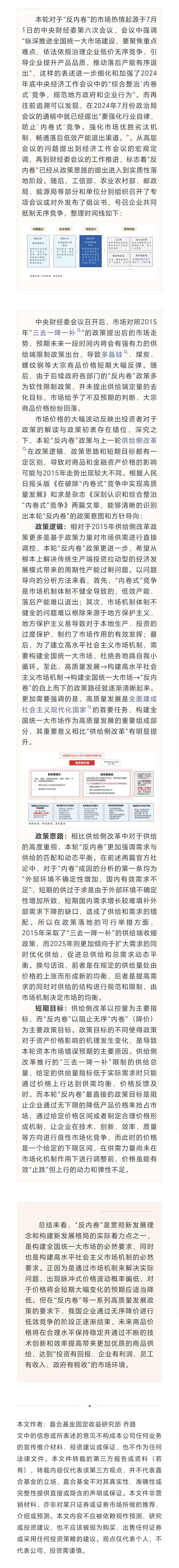 【嘉合基金观察嘉】“反内卷”的政策脉络