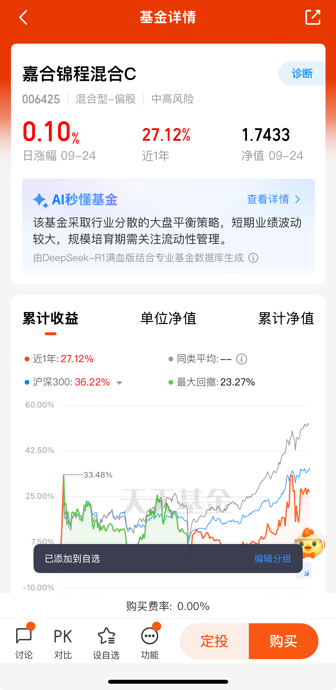 你知道吗,嘉合睿金混合发起式C这哥们儿,从去年到今年,业绩直接起飞!去年四季度更离谱,单季涨了20.41%,全年涨幅52.48%,在4129个同类基金里排第57名!别人家基金还在原地踏步,它已经跑赢中位数一大截——人家平均才涨13.48%,它直接翻倍秀肌肉!