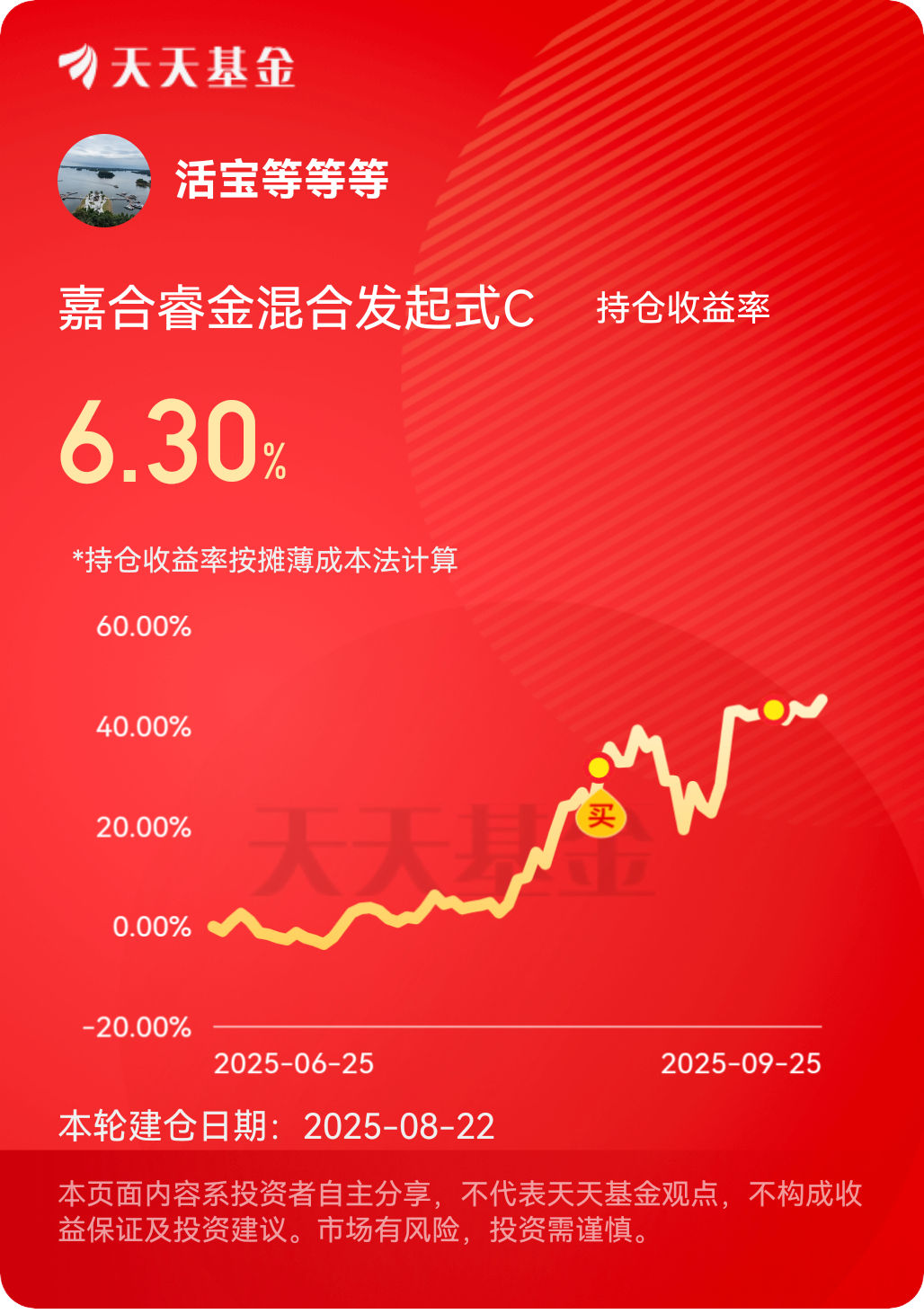 国庆期间我打算去杭州游玩,听说西湖可以AI导游扫码获取智能讲解,我打算好好体验一下,深刻感受人工智能在消费场景的渗透力。作为$嘉合睿金混合发起式C$ 的持有人,我对其聚焦AI算力、消费电子、低空经济的布局很有信心,近一年超109%的收益率也印证了板块趋势的强劲。同时我还关注了同类型的$博时上证科创板人工智能ETF发起式联接C$ 、$华夏中证动漫游戏ETF发起式联接C$、$易方达信息产业混合C$ ,它们分别在AI产业链、泛娱乐科技、信息技术领域各具特色,能从不同维度捕捉科技成长机会。在我看来,科技主线的景气度持续,像AI算力这类硬科技赛道具备长期投资价值,而嘉合睿金在行业轮动和个股精选上的表现,让我愿意继续持有并期待它在四季度的表现。@嘉合基金