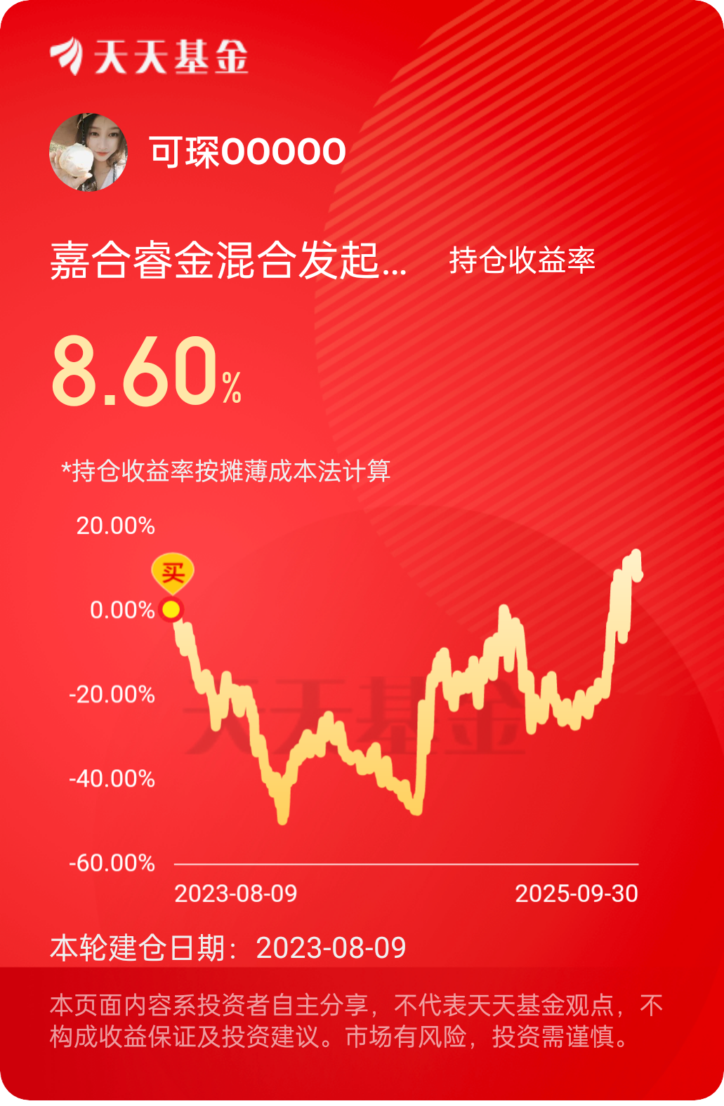 消费市场的这股热浪,让我看到了板块的投资价值。当前消费刺激政策持续推出,经历深度调整后,消费板块估值已处于具有吸引力的区间。以$嘉合睿金混合发起式C$ 为例,其重点布局的消费领域在当前环境下有望迎来估值修复。