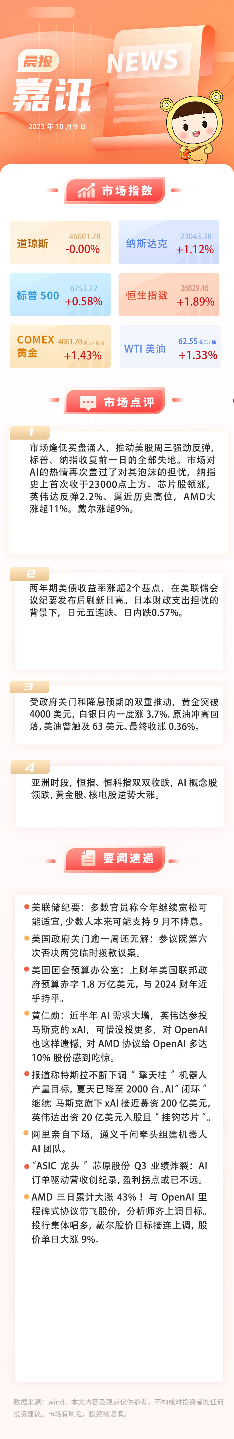 10月9日嘉讯:美股周三强劲反弹,日元五连跌