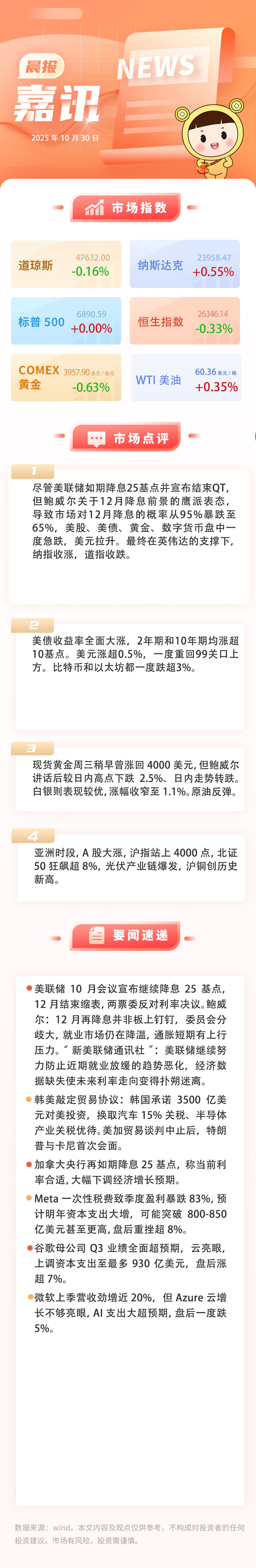 10月30日嘉讯:美债收益率全面大涨,原油反弹