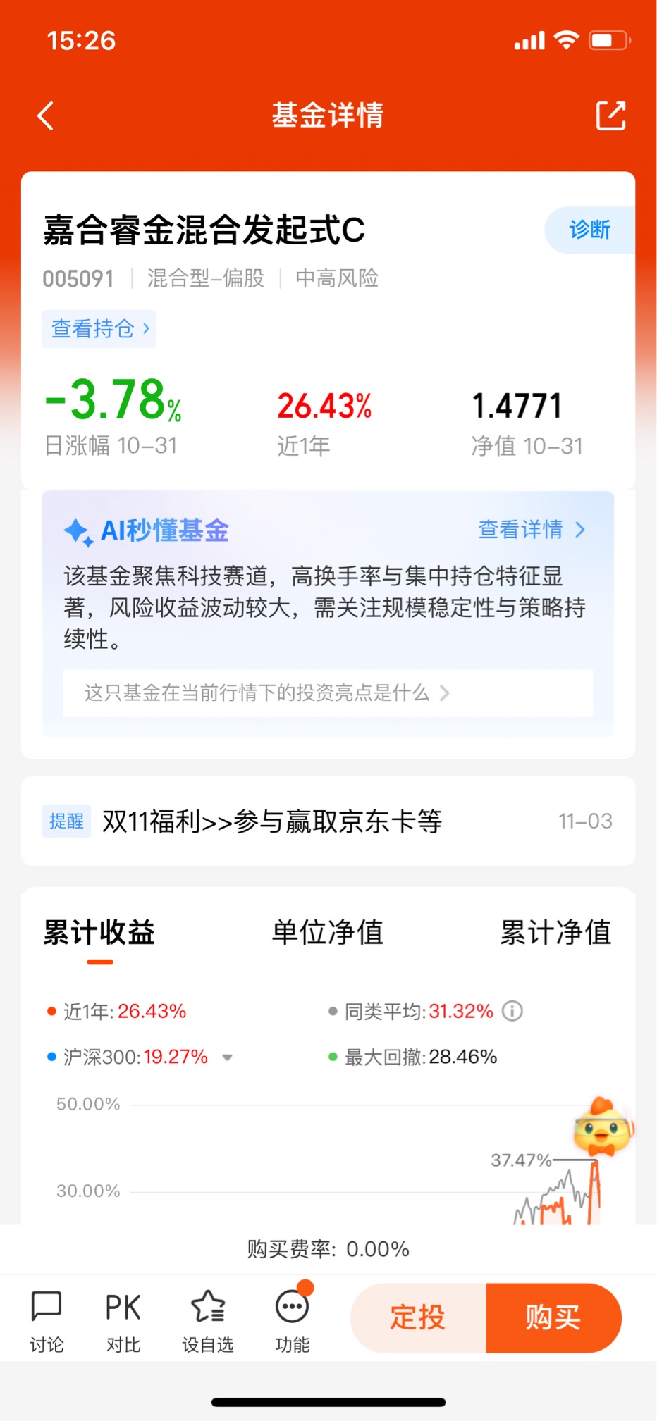 特别让我感到欣慰的是,嘉合睿金混合发起式C(005091)基金的投资策略并不是单纯的“押宝”某个板块,而是通过灵活调整仓位,选择具有成长潜力的个股和板块。在过去的一年里,基金的涨幅已经达到了26.43%,算是一个不错的成绩单。这也让我对基金的管理和投资决策充满了信心,尤其是在市场波动较大的时候,基金能够保持稳健的收益,这让我觉得非常踏实。