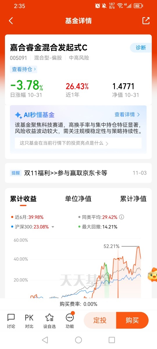 先说说最直观的投资体验。不同于有些基金波动剧烈时让人“坐过山车”的焦虑,这款产品在市场震荡期展现出了较强的抗风险能力,净值曲线走得相对平稳,不会因为短期市场起伏就让人频繁陷入纠结。而且作为C类份额,它在申购费上的优势很明显,对于像我这样习惯小额、长期定投的投资者来说,能有效降低持有成本,不用在手续费上多花冤枉钱;日常查看持仓、了解基金动态时,相关信息更新及时且清晰,这些细节都让整个投资过程变得轻松省心。