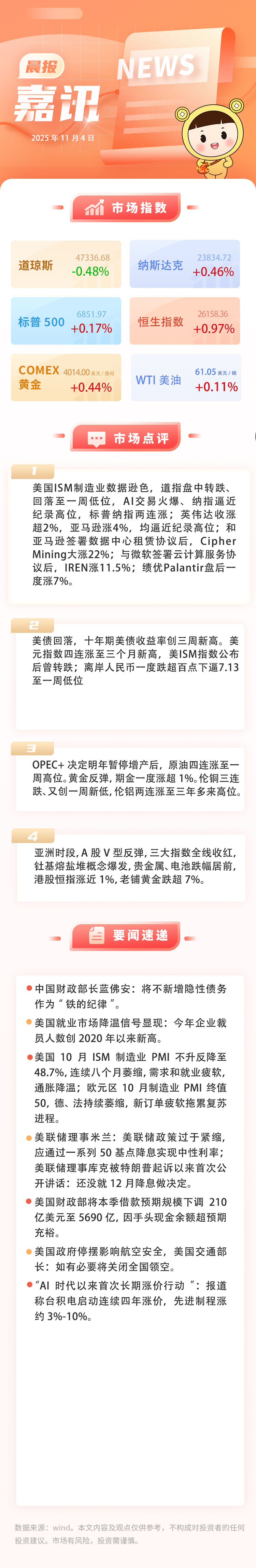 11月4日嘉讯:AI交易火爆,原油四连涨至一周高位