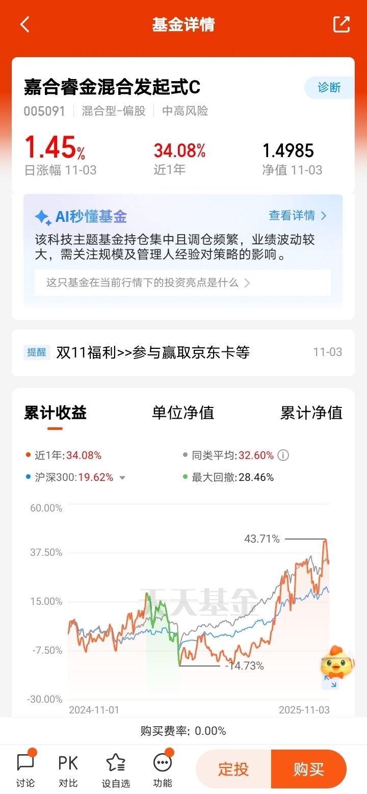 今年以来科技主题表现亮眼,累计取得比较大的涨幅,$嘉合睿金混合发起式C$投资涉及