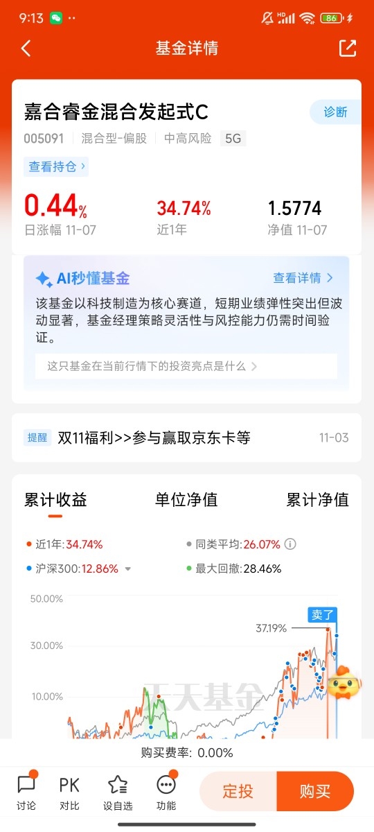 #11月基金投资策略# $嘉合睿金混合发起式C$ #晒收益#