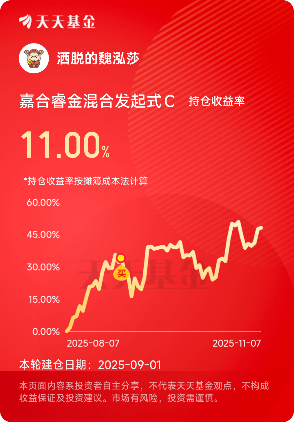 #11月基金投资策略# $嘉合睿金混合发起式C$ #晒收益# @高贵典雅的远青2 @辣妈养鸡