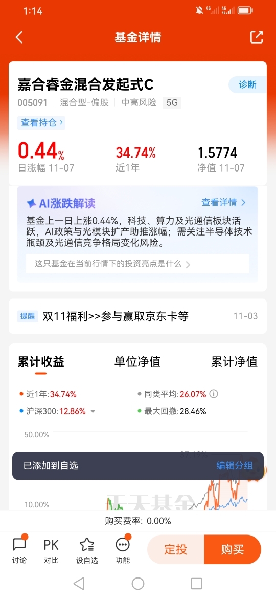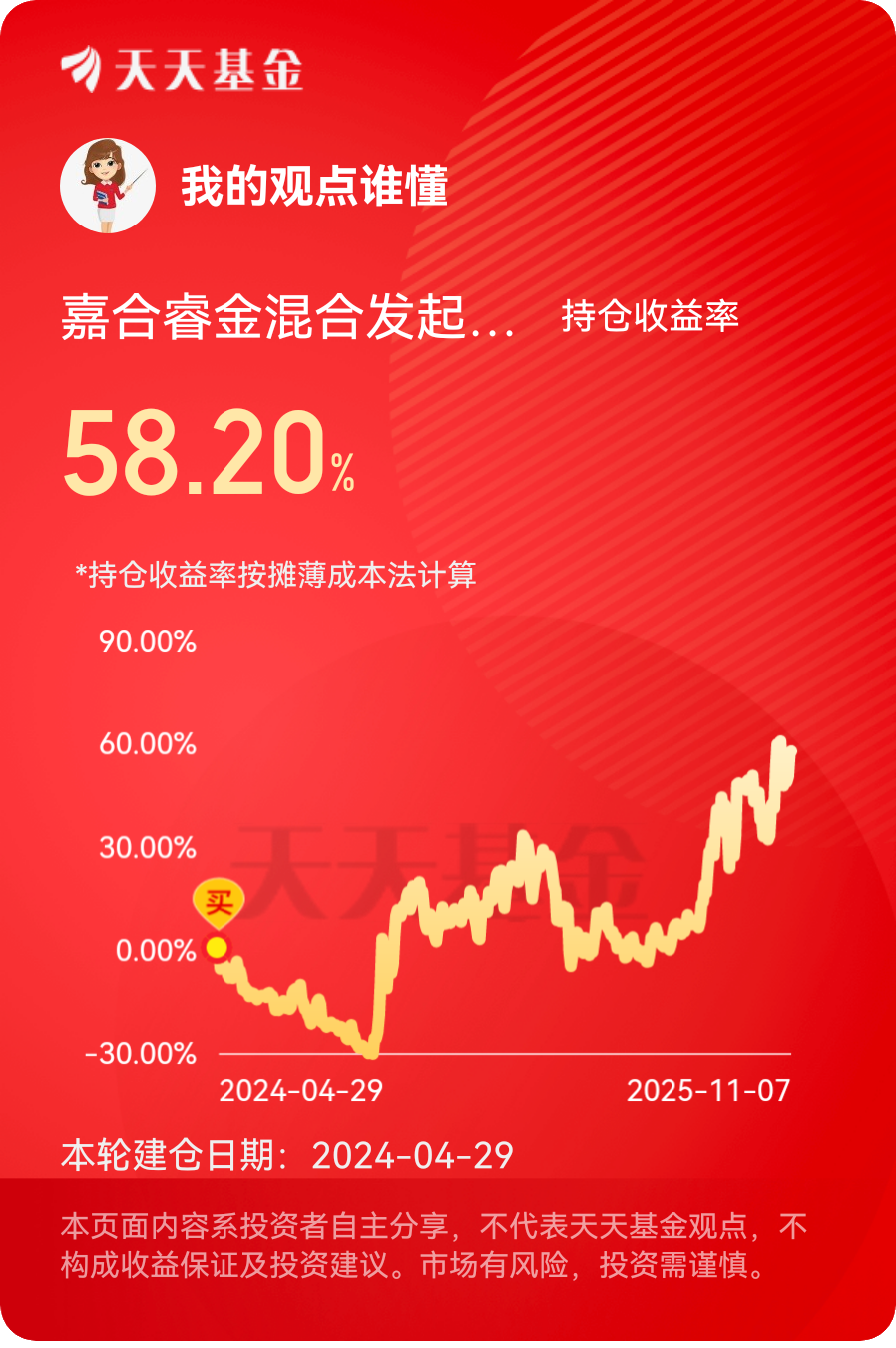因此我选择了相关的基金产品,是嘉合睿金混合发起式C(005091),因为嘉合基金在投资领域相当专业。@嘉合基金 @基民柳 @一生平安54