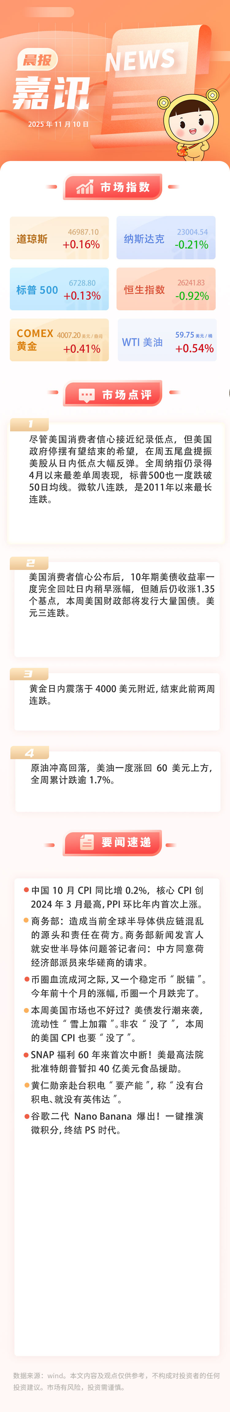 11月10日嘉讯:美元三连跌,原油冲高回落