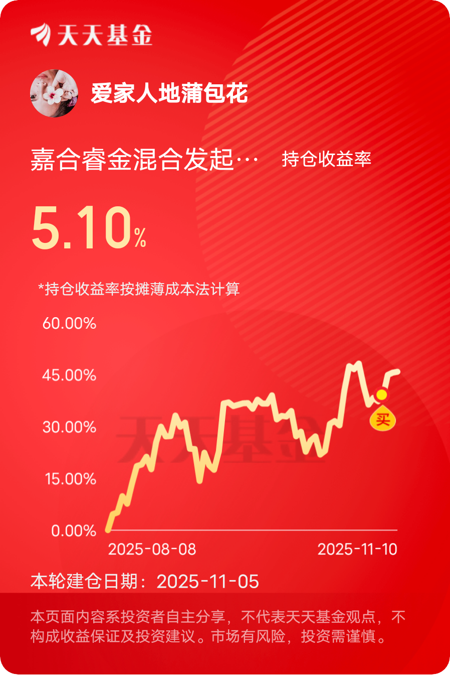 @糊里糊涂4号 嘉合睿金最吸引我的特质,是其“战略+战术”的双轮配置策略。作为混合型基金,它既坚守长期成长赛道,又能通过大类资产调整规避风险——2024年Q4市场调整时,基金果断降低股票仓位、增配高等级债券,成功躲过后续指数回调 。$嘉合睿金混合发起式C$ $嘉合锦鹏添利混合A$ $嘉合锦明混合A$ #晒收益#