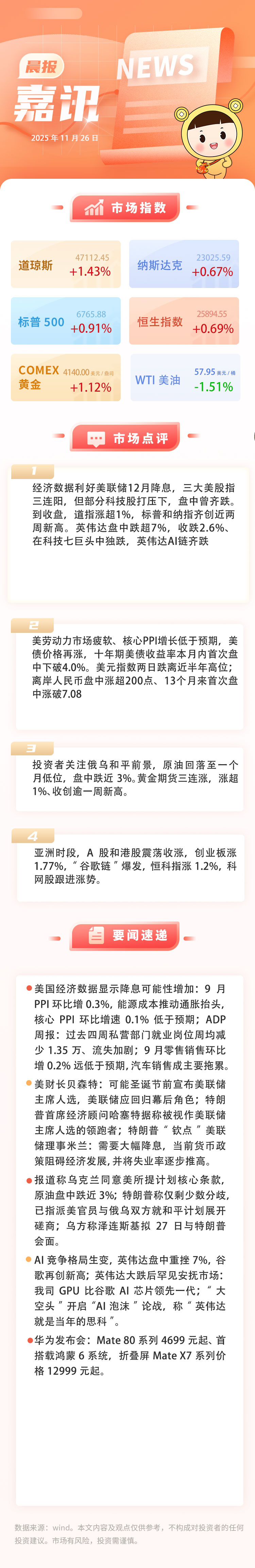11月26日嘉讯:经济数据利好美联储12月降息,原油回落