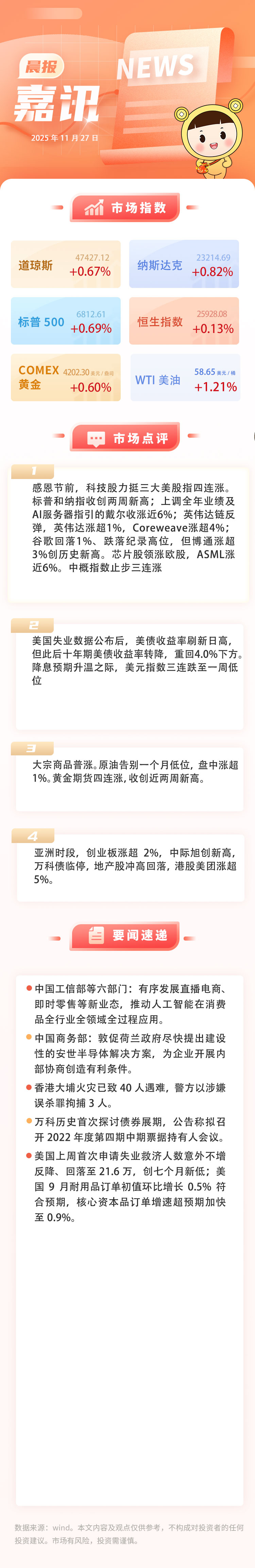 11月27日嘉讯:黄金期货四连涨,降息预期升温