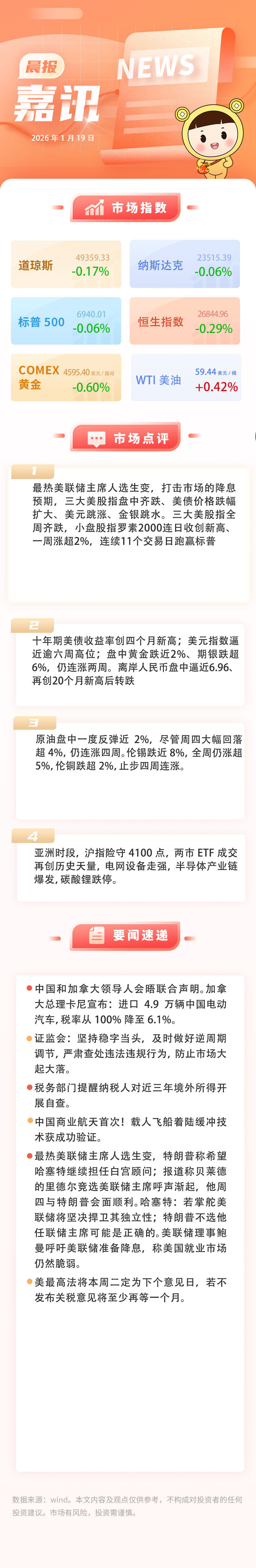 1月19日嘉讯:三大美股指盘中齐跌,原油盘中一度反弹近2%