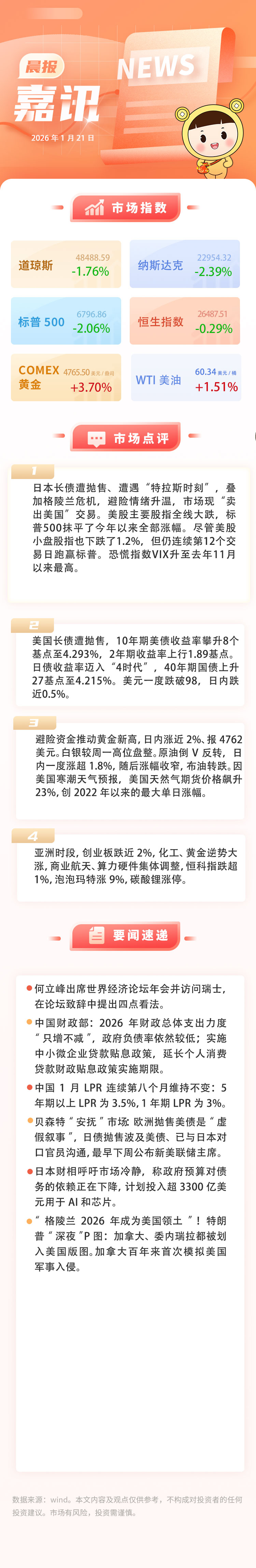 1月21日嘉讯:美股主要股指全线大跌,原油倒V反转