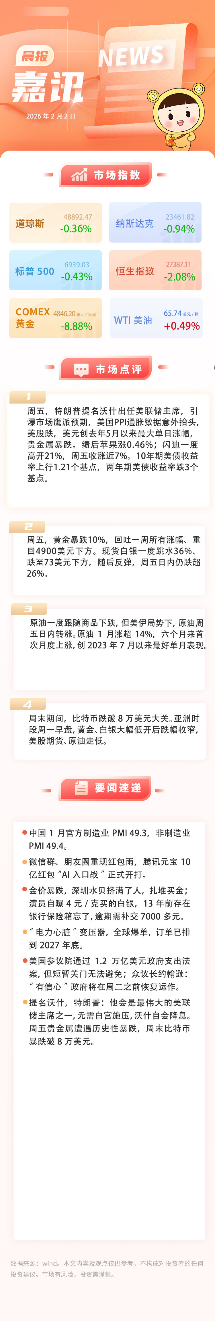 2月2日嘉讯:贵金属暴跌,美联储主席引爆市场鹰派预期
