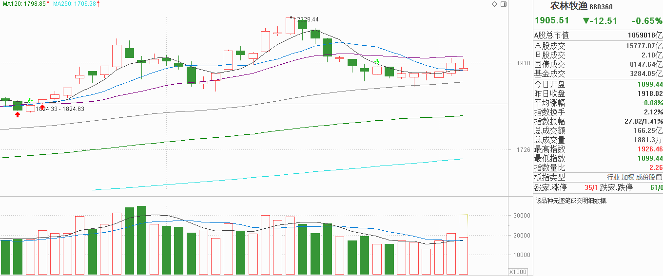 农业上周收复5天线,今天冲高又回落!为啥总被20天线挡住?资金是关键!