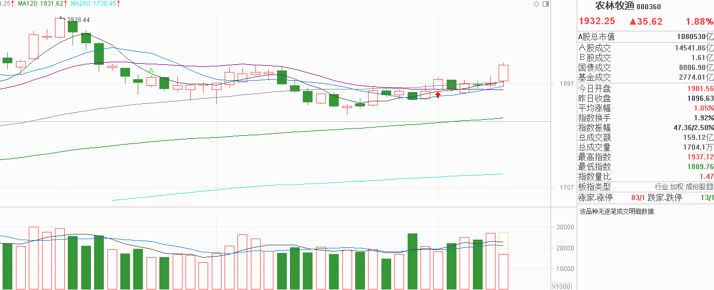 农业的朋友们,都给我把耳朵听过来!上周五一度小阳反弹,尾盘冲高回落收出上影线一点也不意外,毕竟没有新增资金流入,农业复制9月底横向震荡的概率是较大的。主要原因还是这个方向一直没有资金在流入,全是存量资金博弈,那怕10月出现持续下行,也是筹码自身因为悲观情绪出现止损离场的表现,市场情绪好了这些资金又回来了。其实农业的波动就是市场情绪的反应,行情偏冷时存量资金也减少,行情偏暖时存量资金就是常量,波动也就没有方向。像今天这样高开探底回升,下影线看似较长,但没有任何的上涨动力,说不定明天又估回落。经过10月无用功的回撤修复,让存量资金的活跃度进一步降低,涨也不是,跌也不是,只等资金重新持续流入后才能激活,也就是说,如果农业突然出现行情的异动,大概率就是新行情启动的前奏,今天明显不是异动行情,还得要等哈。