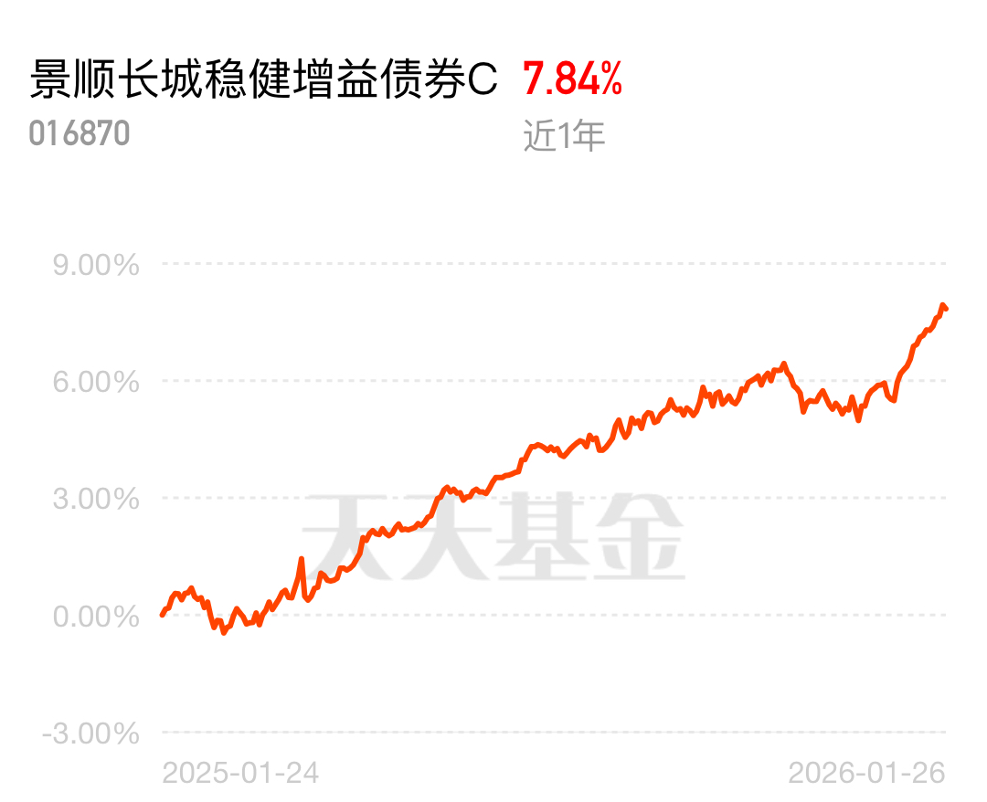 看景顺长城稳健增益债券 C 的成绩单就知道多香,近 1 年 7.84% 一路向上,1 月就 2 天跌,涨多跌少的格局太靠谱,不仅能拿债基的稳稳幸福,偶尔还能尝到股基的爆发甜头,继续看好,蹲个机会上车$景顺长城稳健增益债券C$
