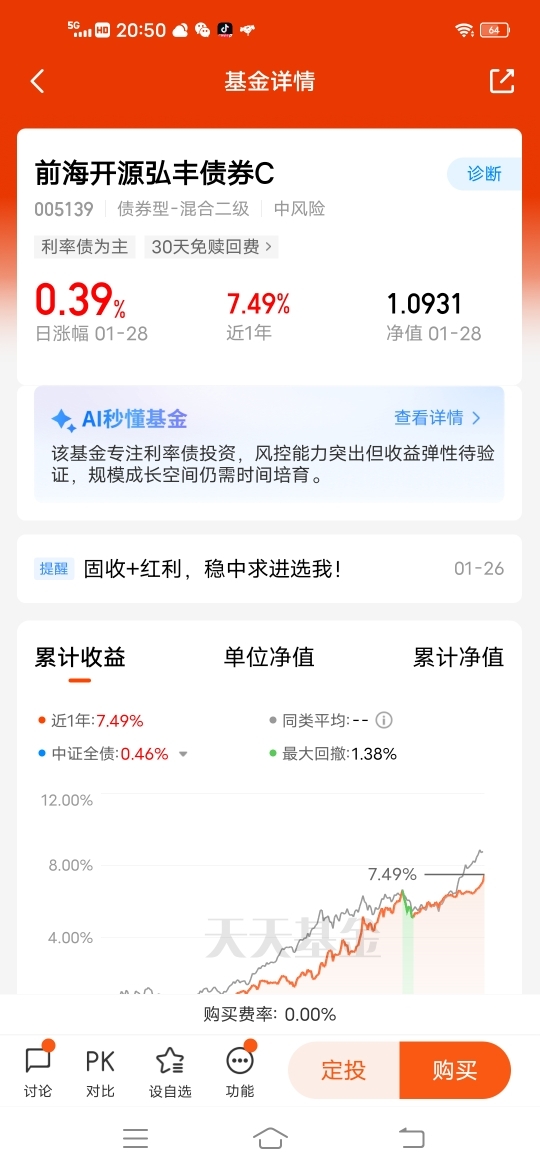 #愿未来如弘丰# +基民小虎在生活和工作中,都遇到过多次重大挑战,但都能凭借过硬的个人素质,沉着应战,圆满解决;关键的一点,就是“谋事在人,成事在天”,努力去争取,享受稳稳的幸福!$前海开源弘丰债券C$ 股债搭配,攻守兼备,采取“固收+红利”策略,基金净值不断刷新新高,非常适合闲钱理财和底仓配置,伙伴们可以持续关注一下。@前海开源基金