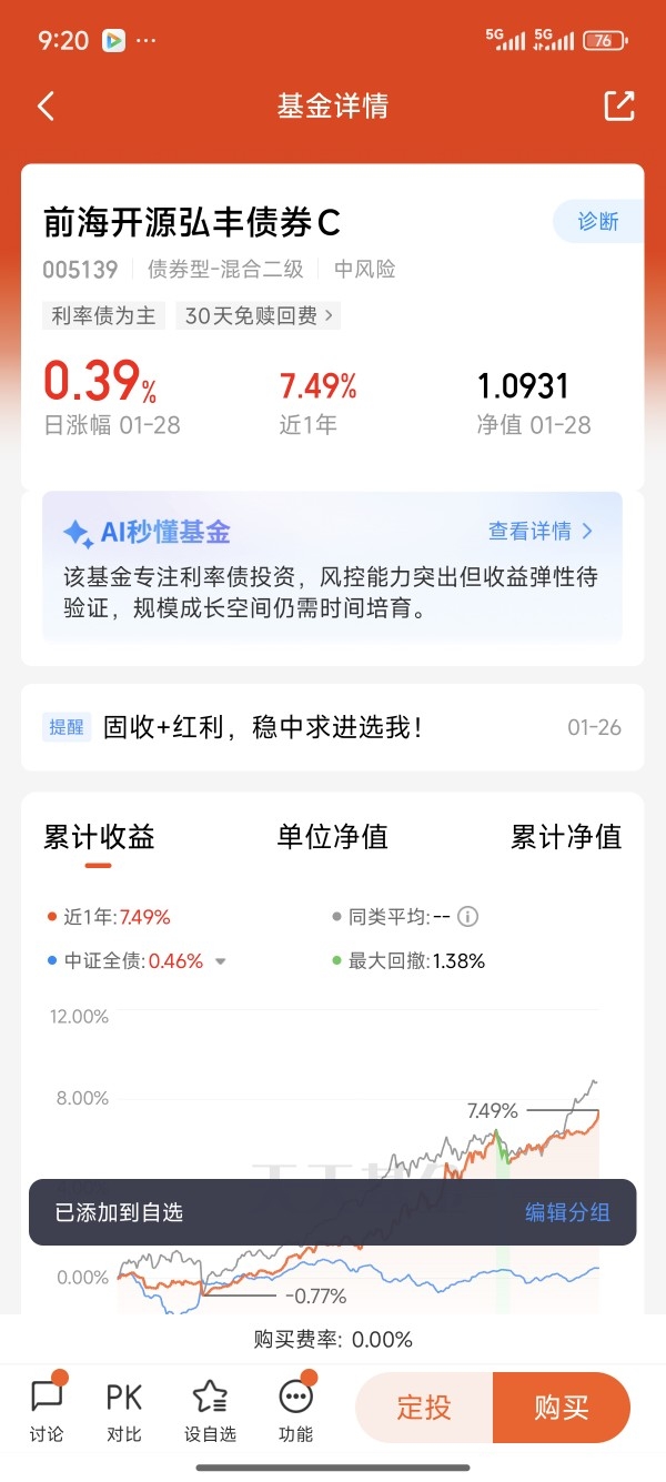 作为一枚在基金市场摸爬滚打3年的“野生投资者”,我曾沉迷于股票基金的“心跳加速”,却在2024年的一场中彻底“破防”。彼时账户缩水超20%,直到朋友推荐了前海开源弘丰债券C(005139),才让我重新理解了“防守”的力量。