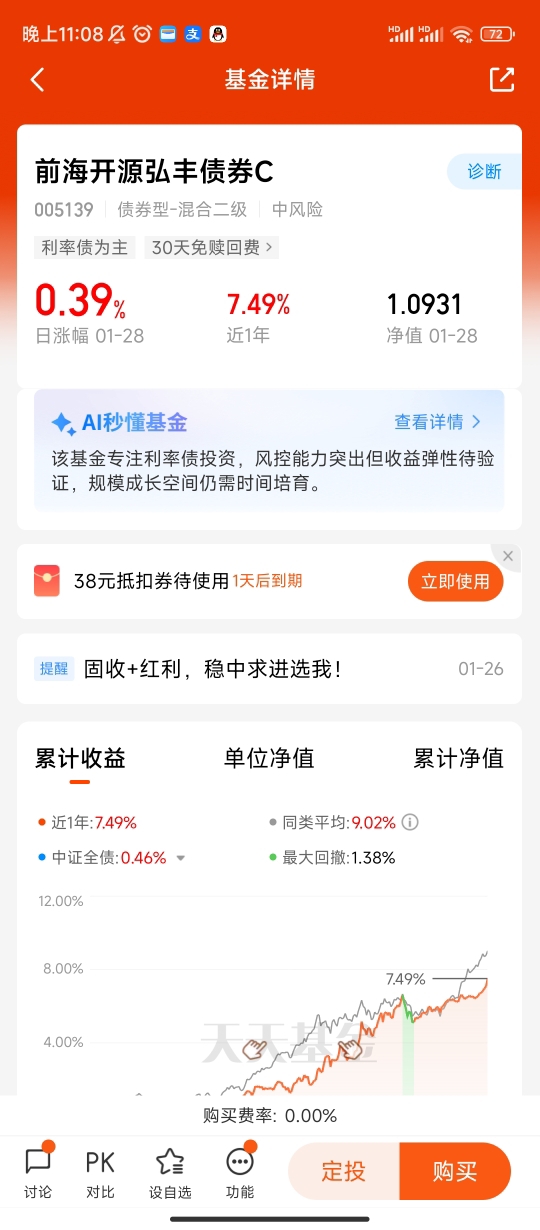 前两年总在焦虑中打转,职场要冲业绩,生活要顾周全,连理财都在高波动里备受煎熬。直到遇见前海开源弘丰债券C,才懂平衡与稳定的珍贵。