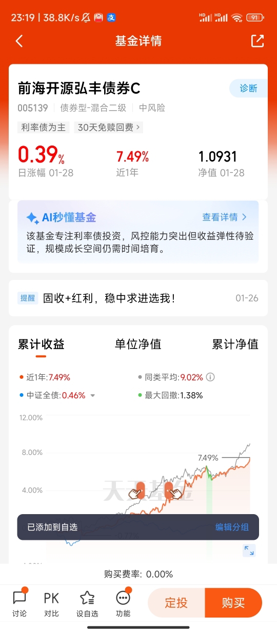 后来琢磨着,钱得存着应急,还得有点小收益,不能再冒风险了。朋友推荐了前海开源弘丰债券C,说它波动小、稳当,适合我这种求踏实的人。我试着投了点,每个月发工资就往里存一笔,不多但坚持着。