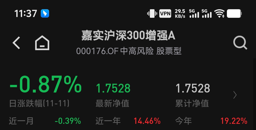 $嘉实沪深300指数研究增强A $近一周下跌0.39%,等待发力